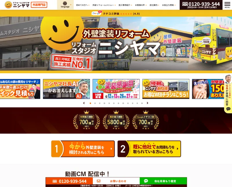 愛知県岡崎市にショールームがあるリフォームスタジオニシヤマは、外壁塗装工事や外装リフォームを中心に展開し、愛知県西三河地区実績NO.1の実績を誇ります。