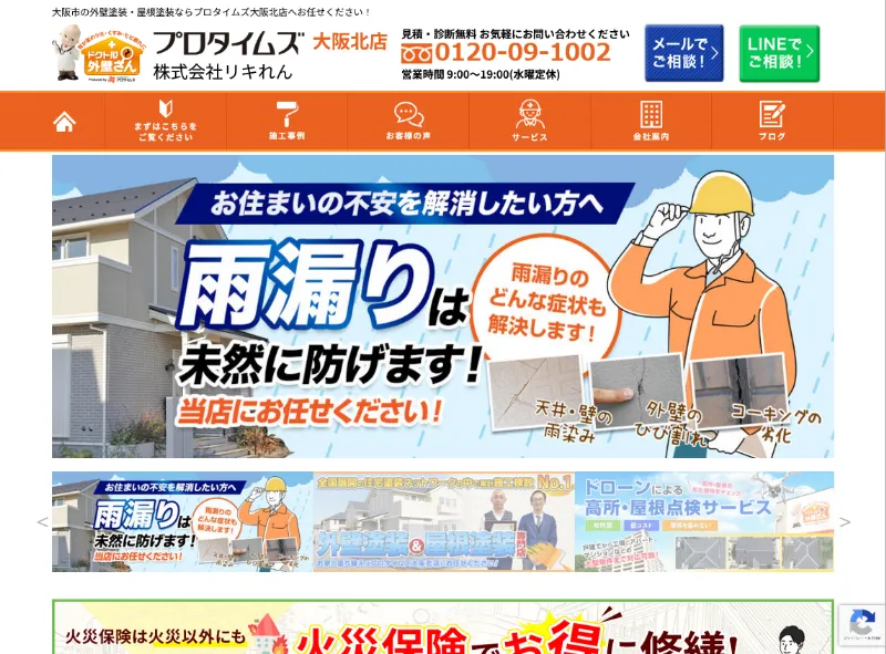 大阪市に拠点を構える株式会社リキれん(プロタイムズ大阪北店)は、長持ち塗装にこだわる外壁塗装の専門店です。全国基準の施工管理を徹底し、経験豊かな職人による丁寧な施工で建物の耐久性を高めています。